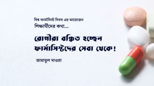 এতো আয়োজনের আড়ালে অপূরনীয় ক্ষতি নিয়ে আলোচনা করতে হচ্ছে আজ! চিকিৎসা ব্যবস্থার এই তথ্য সম্পর্কে আমরা অবগত যে, ডাক্তার রোগীকে দেখে প্রেসক্রিপশন করেন, ফার্মাসিস্ট ডাক্তারের প্রেসক্রিপশন মূল্যায়নের মাধ্যমে রোগীকে ওষুধ সম্পর্কে অবহিত করেন এবং নার্স ফার্মাসিস্টদের নির্দেশিত পন্থায় রোগীকে সেবা করেন।